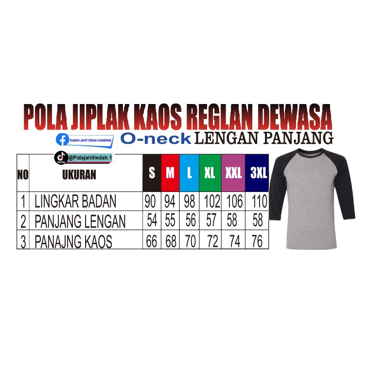 1 set pola lengan panjang xs, s, m, l, xl, xxl.